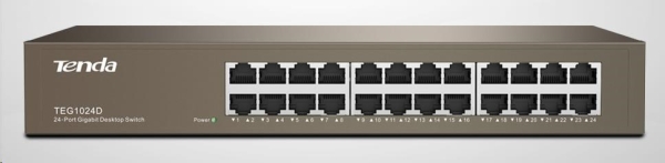 Tenda TEG1024D přepíná data pomocí 24 portů RJ45 s přenosovou rychlostí 10/100/1000 Mb/s s automatickou detekcí rychlosti. Switch disponuje ochranou proti přepětí 6000 V. Podpora přepojování uzlů v módu Store-and-Forward. Full-duplex kontrola toku 802.3x, half-duplex kontrola toku v režimu Back-Pressure. Maximální propustnost 48 Gb/s. Balení obsahuje kovové "L" držáky pro montáž do rozvaděče. Switch je napájen interním zdrojem
