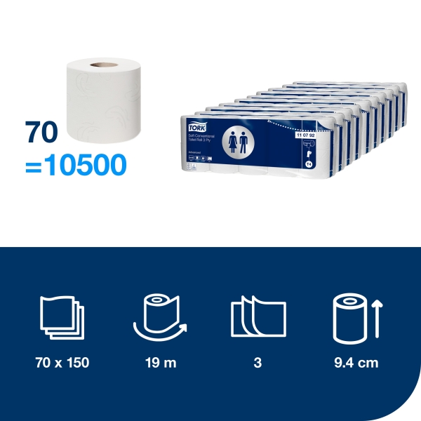 Toaletní papír TORK - konvenční role, 3-vrstvý