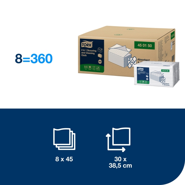 Tork W8 utěrky 2 v 1 k drhnutí a čištění 1-vrstvé 45 ks