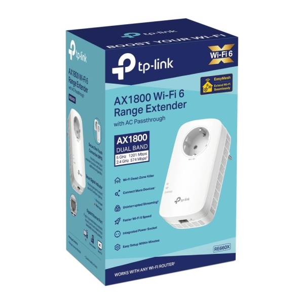 TP-Link RE660X EasyMesh/OneMesh WiFi6 Extender/Repeater (AX1800,2,4GHz/5GHz,1xGbELAN)