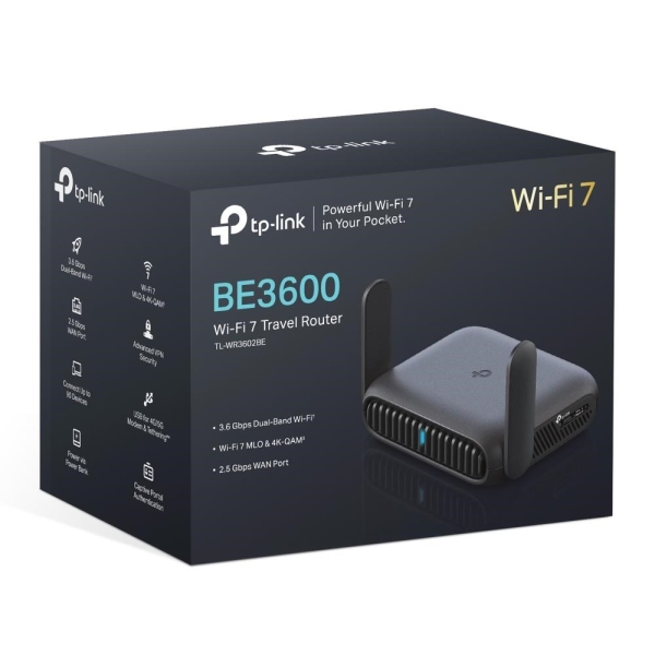 • BE3600 Dual-Band Wi-Fi 7 přenosný cestovní router: Kombinace technologie Wi-Fi 7 a TL-WR3602BE poskytuje rychlou bezdrátovou rychlost pro nepřerušované streamování videa, stahování a online hraní současně.†‡