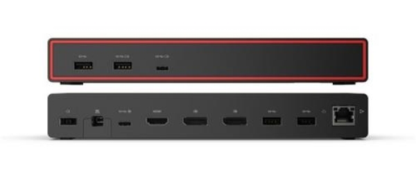LENOVO dokovací stanice ThinkPad USB4 Smart Dock 5500 - 100W adaptér (65W PD) Lenovo ThinkPad USB4 Smart Dock 5500, navržený pro zvýšení každodenní produktivity, je špičkou v nové řadě USB doků a nabízí chytřejší způsob práce. Díky zcela novému softwaru Lenovo Accessories Fleet Manager (LAFM) od AWS for IT Manager má dokovací stanice šířku pásma 40 Gb/s s připojením k notebooku přes USB4, což vám umožní rozšířit sestavu monitoru o více pixelů a vyšší obnovovací frekvence. Vlastnosti: * tato dokovací stanice s nejnovější technologií USB4 zvyšuje výkon připojení ve srovnání s USB-C 3.2 Gen 2 až čtyřnásobně. S šířkou pásma až 40 Gb/s můžete mít až jeden displej s ultravysokým rozlišením 8K a 60 Hz nebo dva monitory s rozlišením 4K a 144 Hz a vysokou obnovovací frekvencí, abyste plně rozšířili svůj notebook Lenovo na výpočetní platformu se všemi druhy periferních zařízení. Podporuje PD 3.1 a má výkon až 100 W pro rychlé nabití notebooku, takže můžete snadno rozšířit potenciál svého pracovního prostoru. * univerzální dokovací stanice, kompatibilita s různými operačními systémy * díky Lenovo Accessories Fleet Manager (LAFM) běží cloudová inteligentní správa nové generace ve webovém prohlížeči a umožňuje IT manažerům spravovat, aktualizovat, konfigurovat a diagnostikovat své dokovací stanice flexibilním, efektivním a pohodlným způsobem kdykoli a kdekoli s lehkostí * podporováno Lenovo Dock Managerem, pokročilým řešením, které automaticky spravuje dokování a zároveň poskytuje aktualizace firmwaru, dotazy k zařízením a analýzy na všech chytrých docích Lenovo Video porty: 2x Display Port 1.4, 1x HDMI 2.1, 1x USB-C plně funkční video port (USB4) USB porty: *přední: 2x USB-A 3.2 Gen 2 (1 AOU, 12 W), 1x USB-C 3.2 Gen 2 (AOU 7,5 W) *zadní: 2x USB-A 3.2 Gen 2, 4,5 W, 1x USB-C 3.2 Gen 2 FullFunction, 7,5 W Zvukové porty: ne Ethernet: 1x gigabitový ethernet *podpora WOL, PXE Boot, MAC adresy pass-through na NB ThinkPad Funkce fyzického zabezpečení: 1x slot pro zámek NanoSaver, 1x slot pro zámek MicroSaver Maximální počet externích monitorů: 4 Maximální rozlišení/obnovovací frekvence: 4x 3840 x 2160 při 60 Hz Nabíjecí port: DC-IN Vstupní výkon: 100 W Power Delivery: ano, PD 3.1 Výstupní výkon: 65 W Tlačítko napájení: ano Typ napájecího konektoru: slim-tip Podporované OS: Win 11, macOS Sonoma, macOS Sequoia Potřeba ovladačů a SW: ano Kompatibilita: https://psref.lenovo.com/accessory/40BC0100EU?tab=Compatibility Barva: Eclipse Black *vyrobeno z 90% post-consumer recyklovaných materiálů Rozměry: 218 x 80 x 31,5 mm Hmotnost: 472 g Obsah balení: *1x ThinkPad USB4 Smart Dock s integrovaným 1m USB4 kabelem *1x 100W napájecí adaptér s tenkým hrotem *1x napájecí kabel * poster pro nastavení * leták Lenovo Accessories Fleet Manager (LAFM) * uživatelská příručka Záruka: 36 měs. Odkaz na stránku výrobce: https://psref.lenovo.com/accessory/40BC0100EU
