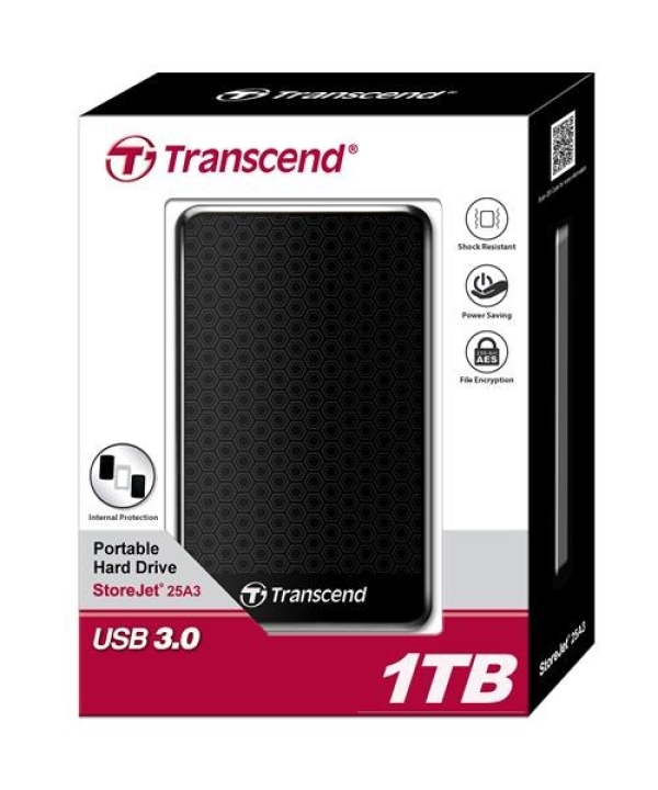 TRANSCEND externí HDD 2,5" USB 3.1 StoreJet 25A3, 1TB, Black (nárazuvzdorný, 256-bit AES)