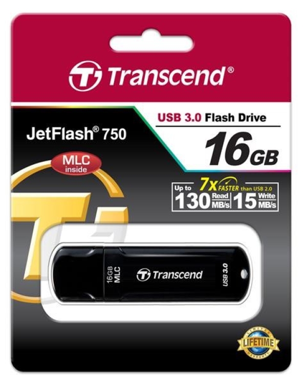 TRANSCEND Flash Disk 16GB JetFlash®750K, USB 3.0, černá
