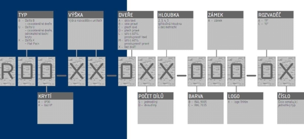 Přesné rozměry a další technické údaje jsou uvedeny níže (hodnoty R1 a R2 označují rozteče montážních otvorů pro zavěšení rozvaděče na zeď). Maximální zatížení rozvaděče je 30 kg