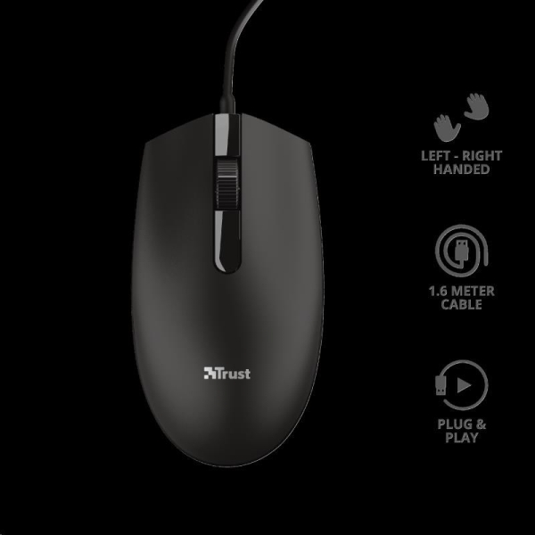 TRUST BASI/Kancelářská/Optická/Drátová USB/Černá