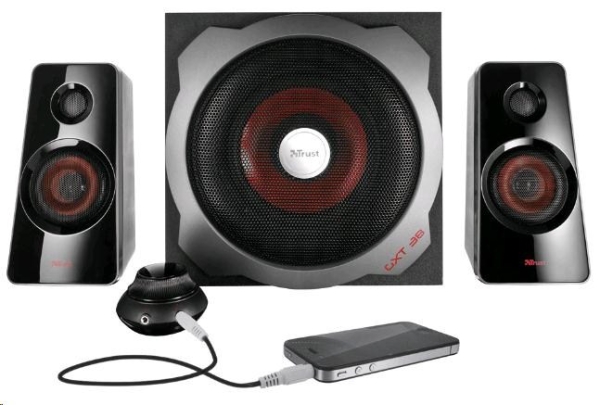 Reproduktory 2.1 se subwooferem * Sestava 2.1 reproduktorů s dřevěným subwooferem a úhrnným výkonem 60 W RMS (maximální výkon 120 wattů) * Vysoce kvalitní zvuk s hlubokým basem * Praktické drátové ovládání hlasitosti pro připojená sluchátka nebo přehrávač iPod/mp3 * Postranní ovládání hlasitosti a basů * 4 v 1: Kompatibilní s PC, Wii, Sony PlayStation 3 a Xbox 360 * Inteligentní správa napájení: automaticky přejde do pohotovostního stavu po určité době nečinnosti Obsah balení * Subwoofer s připojeným napájecím kabelem * 2 satelitní reproduktory s připojeným kabelem * Kabelové dálkové ovládání s připojeným zvukovým kabelem * Kabel s redukcí pro připojení herní konzole * Uživatelská příručka Systémové požadavky: * PC nebo notebook s 3,5 mm audio připojením * Wii, Playstation 3 nebo Xbox 360 herní konzole (vyžaduje AV-kabel, který je součástí vaší herní konzole) * Připojení do elektrické zásuvky Více na webu výrobce: http://www.trust.com/en/product/19023-gxt-38-2-1-ultimate-bass-speaker-set