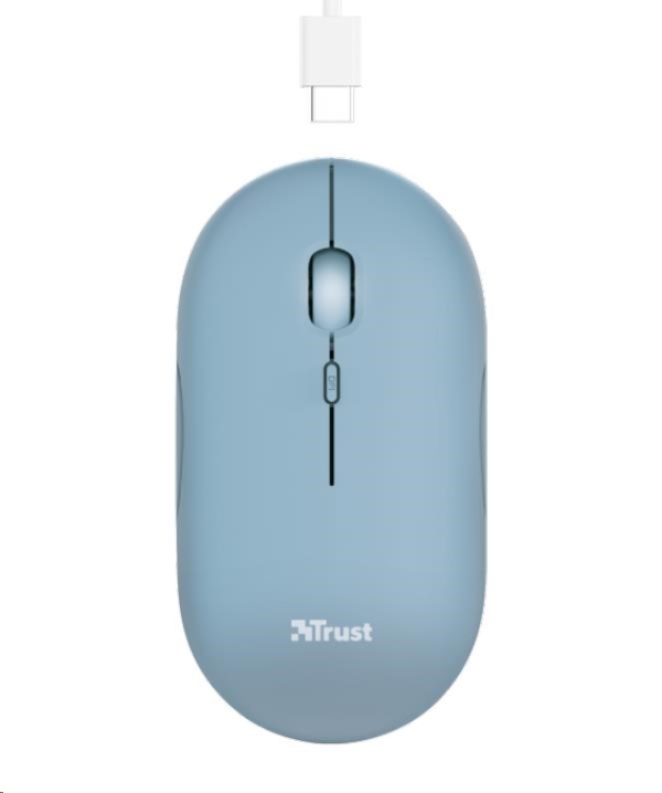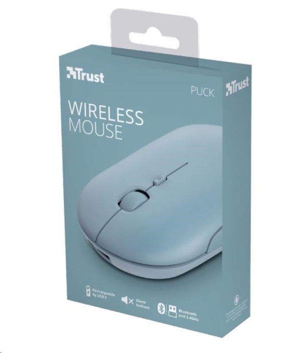 Trust Puck Rechargeable Bluetooth Wireless Mouse. Dobíjecí bezdrátová myš s minimalistickým zaobleným tvarem a tichými tlačítky. Trust Puck je navržena tak, aby byla vaším řešením pro vaše výzvy na cestách. Tato ultratenká bezdrátová myš je dostatečně malá na to, abyste si ji mohli vzít s sebou, a přesto je dostatečně pohodlná na používání. Je vybaven spoustou praktických funkcí, jako je duální bezdrátové připojení, tichá tlačítka a dobíjecí baterie. A funguje pro leváky i praváky. Díky dobíjecí baterii už nikdy nebudete muset kupovat jednorázové baterie. Když myši dochází energie, jednoduše ji připojte pomocí přiloženého kabelu USB-C a můžete vyrazit. Šetří peníze i životní prostředí. Klíčové vlastnosti *Ultratenký design, pouze 27 mm na výšku, takže se snadno vejde do tašky *Tichá tlačítka snižují nepříjemné zvuky kliknutí o 90% *Šetrné k životnímu prostředí díky dobíjecí baterii *Připojení přes Bluetooth nebo pomocí přiloženého, snadno skladovatelného USB mikro přijímače *Pro praváky i leváky díky symetrickému oboustrannému designu *Upravte rychlost pomocí tlačítka DPI (800, 1200, 1600 DPI) Technické parametry *Typ připojení: bezdrátové *Bluetooth: ano *Dosah bezdrátové sítě: 10 m *Bezdrátové protokoly: RF 2,4 GHz, Bluetooth *USB verze: 2.0 *Rozsah DPI: 800 dpi - 1600 dpi *Senzorová technologie: optická *Počet tlačítek: 4 Odkaz na web výrobce: https://www.trust.com/en/product/24126-puck-rechargeable-bluetooth-wireless-mouse-blue