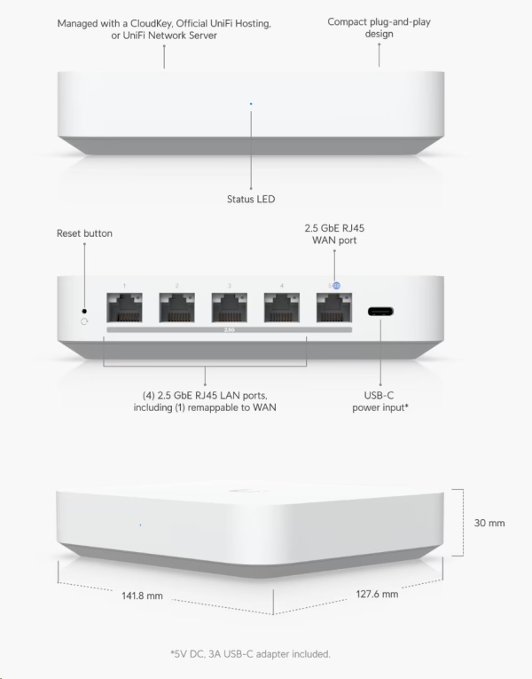 Ubiquiti UniFi Gateway MAX (UXG-Max) - kompaktní brána s funkcí Routeru, WAN 2.5 GbE, 4x LAN 2.5 GbE, Bluetooth