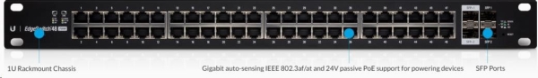 UBNT EdgeSwitch ES-48-500W [70Gbps, 500W, aktivní (802.3af/at) i pasivní (24V) PoE, 2xSFP, 2xSFP+, L2/L3]