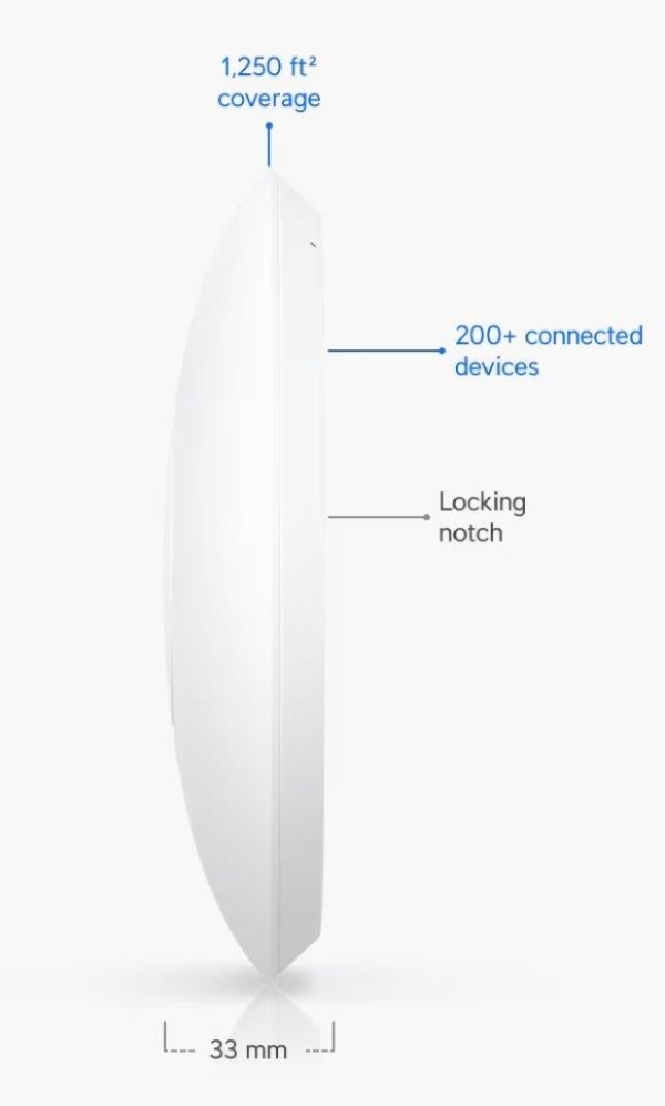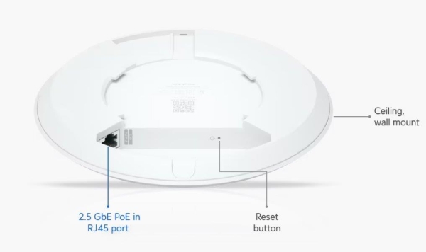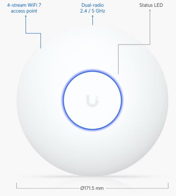 Compact, ceiling-mounted WiFi 7 AP with 4 spatial streams and 2.5 GbE uplink. WiFi 7 4 spatial streams 115 m2 (1,250 ft2) coverage 200+ connected devices Powered using PoE 2.5 GbE uplink
