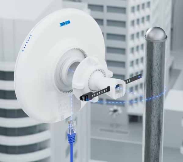 5 GHz wireless bridge with PoE output that connects at 5+ km distances or seamlessly uplinks to UniFi WiFi. Link at 5+ km distances with a point-to-point connection to another Device Bridge Pro, or uplink seamlessly with UniFi WiFi Auto-Link (2) GbE ports with (1) PoE output for PoE devices Powered using PoE/PoE+* Pole mounting Weatherproof (outdoor exposed) Sold as a single unit Note. Cannot be set up standalone and must be managed by a UniFi Console, Official UniFi Hosting, or a Self-Hosted UniFi Network Server. *PoE adapter included. PoE+ input required for PoE passthrough.