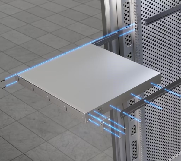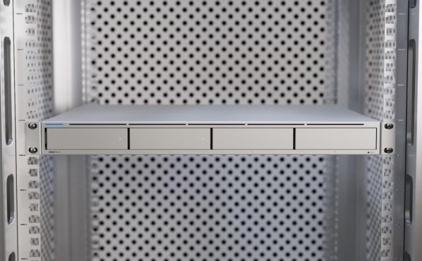 1U rack-mount NAS with (4) 2.5/3.5" HDD bays and (2) M.2 NVMe SSD cache slots, delivering faster access, lower latency, and high-availability 10 Gbps networking for large-scale file storage and sharing.