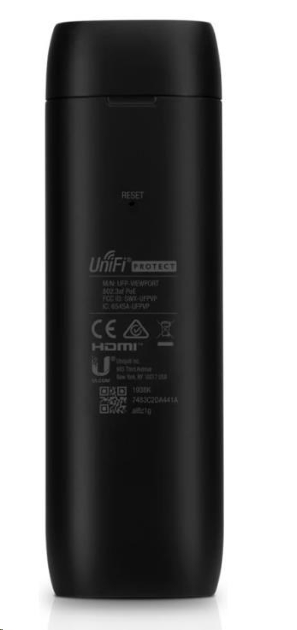 UniFi Protect ViewPort je zařízení umožňující sledování živého obrazu až 16ti kamer z UniFi Video Protect přes HDMI na vašem monitoru a to až ve 4k rozlišení. Zařízení má 2 Gigabitové LAN porty, z nichž jeden umožňuje napájení přes 802.3af PoE, HDMI port s podporou 4k při 30fps a resetovací tlačítko.