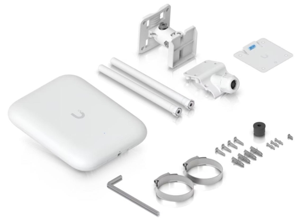 Popis produktu Ubiquiti U7 Pro Outdoor je nová venkovní tripple-band jednotka s podporou Wi-Fi 7. Pracuje v pásmu 2,4 GHz o rychlosti 688 Mb/s, v pásmu 5 GHz o rychlosti 4,3 Gb/s a v pásmu 6 GHz o rychlosti 5,7 Gb/s. Jednotka disponuje vestavěnou anténou se ziskem 8-10 dBi a vyzařovacím úhlem 90°, součástí balení jsou také dvě externí všesměrové antény, které připojíte pomocí RP-SMA konektorů na horní části. Pro připojení do sítě je k dispozici LAN port o rychlosti až 2,5 Gb/s. Access point je napájen pomocí PoE+ (adaptér není součástí balení). Access point nabízí široké možnosti montáže na stěnu, strop nebo stožár, montážní příslušenství je součástí balení, pro venkovní použití vč. voděodolné kabelové průchodky. Centrální řízení jednotek K zařízení je potřeba stáhnout z oficiálních stránek originální software nazývaný UniFi controller, díky kterému lze řídit celou síť. Nespornou výhodou UniFi controlleru je, že je zcela zdarma bez jakéhokoliv omezení! Tento centrální management umožní nahrávat mapy a nastavit základní parametry jako například SSID, guest účet, úvodní stránku, statistiky provozu i seznam a status asociovaných klientů vždy snadno a rychle. U7-Pro-Outdoor Výhody UniFi řešení Zero Handoff Roaming - bezvýpadkový přechod mezi jednotlivými AP Wireless uplink (hodí se tam, kam není možné dostat datový kabel) Až 8 SSID Detailní statistiky provozu Guest síť Voucher system Load balance - udržování rovnoměné zátěže / přepínání klientů Omezování rychlosti pro každé SSID Obsah balení Zařízení Držáky na stěnu, strop a stožár Voděodolná kabelová průchodka Vrtací šablona Stahovací páska Montážní sada