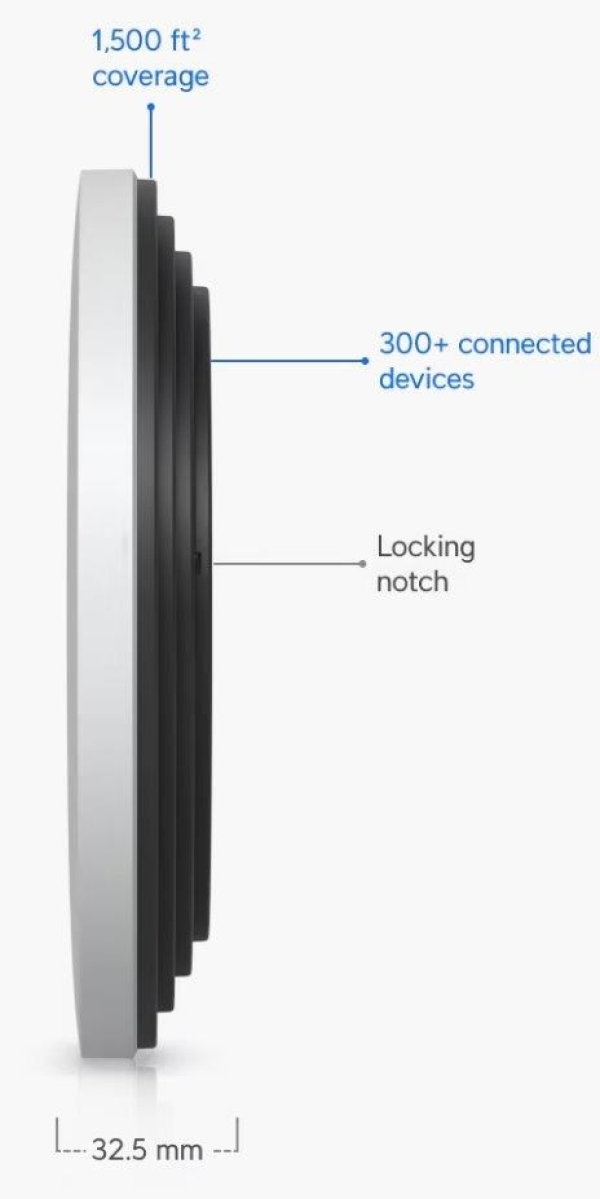 Popis produktu Ubiquiti U7-Pro-XG je nový WiFi 7 UniFi AP. Jedná se o tri-band access point s rychlostí přenosu 5,8Gbps v pásmu 6GHz, až 4,3Gbps v 5GHz pásmu a až 688 Mbps v pásmu 2,4GHz a pokročilým šifrováním WPA3. U7-Pro-XG je určeno k WiFi pokrytí vaší domácnosti, kanceláře, hotelových prostor nebo skladu s podporou až 300+ připojených klientů. Plná podpora roamingu zajišťuje plynulé předávání připojených klientů mezi jednotlivými AP. Pro připojení do sítě je AP vybaveno 10G ETH portem, který slouží i pro napájení pomocí PoE 802.3at nebo pasivním PoE v rozsahu 42,5-57V DC, PoE injektor není součástí balení. Výhody UniFi řešení • Roaming - přechod mezi jednotlivými AP bez výpadků • Wireless uplink – ideální pro místa, kam nelze přivést datový kabel • Až 8 SSID • Detailní statistiky provozu • Guest síť • Load balancing - udržování rovnoměné zátěže / přepínání klientů • Omezování rychlosti pro každé SSID Obsah balení • Zařízení • Kit k přichycení na strop • Sada šroubků Technické parametry Bezdrátové vlastnosti Bezdrátové frekvence:2.4 + 5 + 6 GHz (triple band) WiFi standardy:802.11n, 802.11a, 802.11ac, 802.11b/g, 802.11ax, 802.11be MU-MIMO:Ano Přenosová rychlost - 5GHz [Mb/s]:4300 Přenosová rychlost - 2.4GHz [Mb/s]:688 Přenosová rychlost - 6GHz [Mb/s]:5800 Vysílací výkon 2.4GHz [dBm]:23 Vysílací výkon 5GHz [dBm]:26 Vysílací výkon 6GHz [dBm]:24 Šifrování:WPA, WPA2, WPA3 2.4GHz MIMO:2 x 2 5GHz MIMO:2 x 2 6GHz MIMO:2 x 2 Typ antény:Vestavěná Počet vestavěných antén:6 Roaming:Ano Zisk antény [dBi]:6, 4, 5 Konektory a rozhraní Rychlost LAN:(1) 100M/1G/2.5G/5G/10G Gigabit LAN:Ano Napájení Napájení přes PoE:802.3at, 42 .. 57V DC Typy PoE:PoE-In (pouze) Max. spotřeba energie [W]:22 Fyzické charakteristiky Použití:Vnitřní Tlačítka:Reset Provozní teplota [°C]:-30 až 40 Hmotnost [g]:750 Šířka [mm]:206 Výška [mm]:206 Hloubka [mm]:33 Software Operační mód:Access Point Výchozí IP adresa:192.168.1.20, Dynamická z DHCP