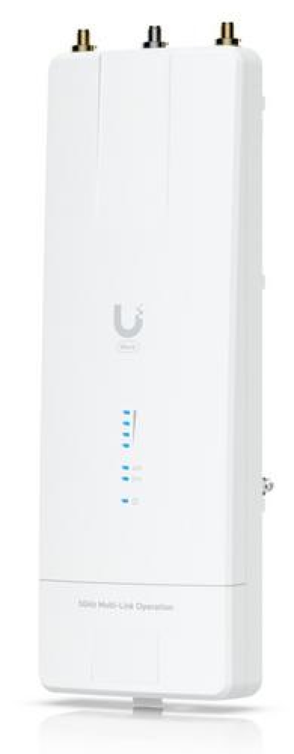 High-performance dual 5 GHz WiFi 7-based radios with Multi-Link Operation (MLO) technology for enhanced throughput and reliable connectivity. 5 GHz, 100+ km link range 5+ Gbps throughput Dedicated spectral analysis radio Channel puncturing (1) 10 GbE and (1) SFP+ port Integrated Bluetooth Compatible with airMAX antenna, airFiber X antenna, UISP Dish and UISP Horn Note. MLO operation is limited to 20 km, with longer ranges coming soon via future firmware updates.
