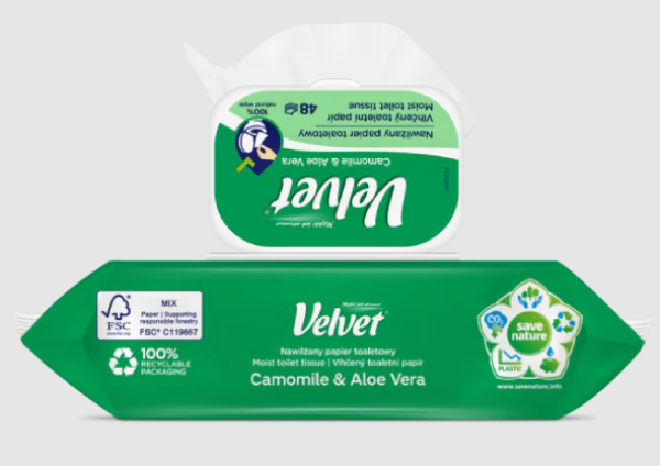 VELVET Vlhčený toaletní papír Camomile & Aloe Vera, 48 ks