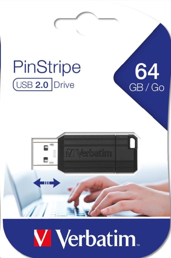 VERBATIM Flash Disk 64GB USB 2.0 Store 'n' Go PinStripe, černá