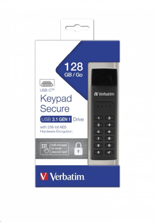 VERBATIM USB C 3.1 Drive 128 GB - Keypad Secure (R:160/W:150 MB/s) GDPR