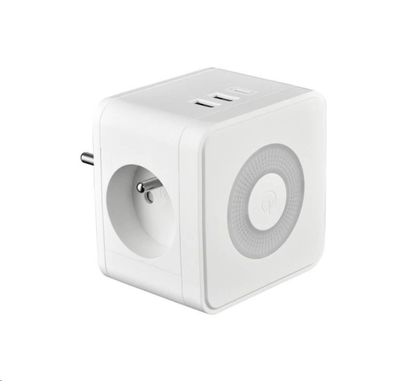 Viking síťový adaptér Y23L, 2x 230 V, 1x USB-A, 2x USB-C, dotykové světlo, bílá