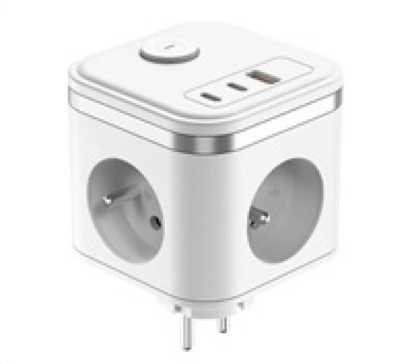 Viking síťový adaptér Y33, 3x 230 V, 1x USB-A, 2x USB-C, tlačítko ON/OFF, bílá