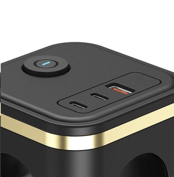 Síťový adaptér VIKING Y33 kombinuje 3 AC výstupy a 3 USB porty, což umožňuje nabíjení až 6 zařízení současně. Díky kompaktnímu designu a tlačítku ON/OFF je používání snadné a přehledné.