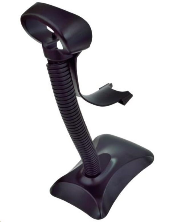Laserový ruční snímač čárového kódu v černé barvě umožňující automatickou detekci přítomnosti kódu a dodávaný včetně stojánku. Konstrukce se vyznačuje vysokou spolehlivostí a odolnost. Je vybaven USB rozhraním umožňujícím emulovat klávesnici i sériový port.