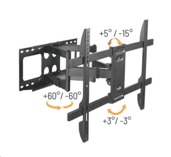 Výsuvný nástěnný držák LPA69-466 je určen pro instalaci TV s plochou obrazovkou s úhlopříčkami od 37“ do 80“. Jeho největší přednostní je robustní výsuvná heavy-duty konstrukce, díky níž unese TV o hmotnosti až 60 kg a zároveň umožňuje nastavit vzdálenost TV od stěny v rozsahu 58 mm až 402 mm, samozřejmostí je pak také velký rozsah polohování. Držák umožňuje snadné naklápění TV v rozsahu +5°~-15°, natočení do stran v rozsahu +60°~-60° a rotaci v rozsahu +3°~-3°, což maximalizuje flexibilitu sledování z libovolného místa v místnosti. Integrovaná svorka na kabely udržuje kabely uspořádané a chráněné. Hlavní vlastnosti: • Robustní, výsuvná heavy-duty konstrukce • Nastavitelná vzdálenost od stěny v rozsahu min. 58 mm, max. 402 mm • Volně sklopitelná konstrukce pro jednoduchou změnu náklonu TV v úhlu +5°~-15° • Výsuvná konstrukce s možností stranového natočení v rozsahu +60°~-60° • Možnost rotace TV v rozsahu +3°~-3° • Univerzální design kompatibilní s širokou řadů televizorů různých modelů a značek • Optimalizovaná velikosti balení pro nižší náklady na přepravu a skladování tj. ideální produkt pro e-commerce prodejce • Jednoduchá a rychlá montáž • Součástí dodávky jsou plastové vázací pásky určené pro organizaci vedení kabelů • Součástí dodávky je kompletní montážní příslušenství • Podporované rozteče VESA: 200x200,300x200,400x200,300x300,400x300,400x400,600x400 Nástěnný držák pro TV Brateck LPA69-466 je nejen praktickým a funkčním doplňkem pro vaši televizi, ale také designovým prvkem. S tímto držákem můžete svou televizi umístit do ideální polohy pro optimální sledovací zážitek a zároveň si užívat klidu a jistoty pevného a bezpečného uchycení. Parametry: • Ergonomická zóna: ZÓNA 3 - Předcházejte bolesti šíje a krční páteře • Produktová řada: Brateck • Určeno pro zařízení: TV • Způsob montáže: Nástěnný • Počet TV: 1 • Maximální náklon (nahoru, dolů): +5°/-15° • Maximální vychýlení (vpravo, vlevo): +60°/-60° • Maximální otáčení TV: +3°/-3° • Maximální hmotnost TV: 60 kg • Minimální rozměr TV: 37'' • Maximální rozměr TV: 80'' • Barva: černá mat • Rozměry (Š x V x H): 402mm x 710mm x 430mm • Hmotnost: 5.65 kg