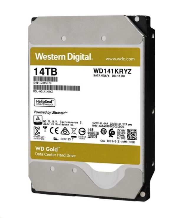 WD GOLD WD142KRYZ 14TB SATA/ 6Gb/s 512MB cache 7200 ot., CMR, Enterprise