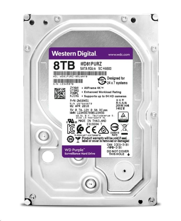 WD PURPLE WD85PURZ 8TB SATA/600 128MB cache, Low Noise, 180MB/s, CMR