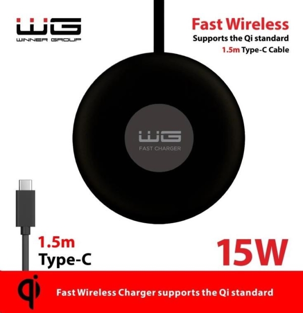 WG - Bezdrátová nabíječka stolní FAST 15W, kulatá stolní, černá