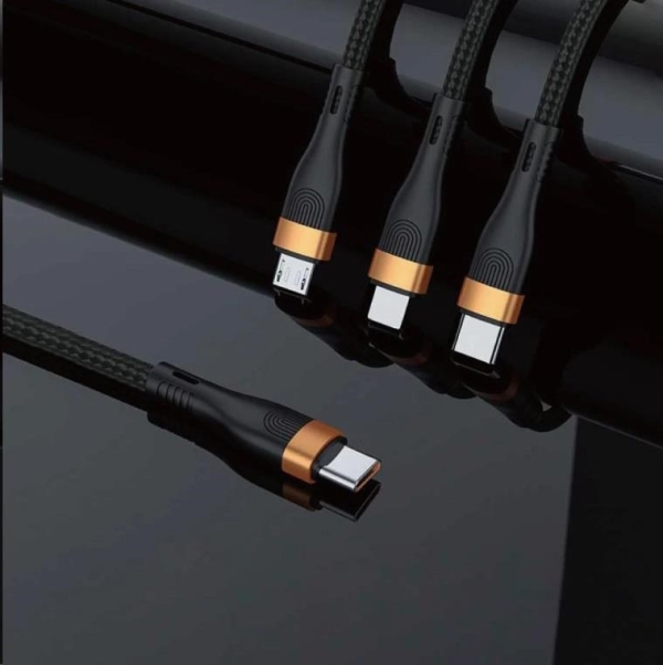 Kabel USB-C na 3v1: USB-C, Lightning, Micro USB – rychlé nabíjení, rychlý přenos, vysoká odolnost
