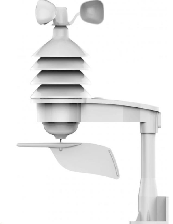 Roměry: Display - 191,6 x 127 x 16mm, Anemometr (větrometr): 152 x 279 x 393mm, Srážkoměr: 166 x 105,5 x 118mm
