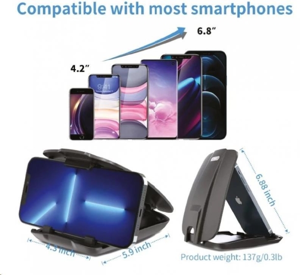 Tento držák spolehlivě udrží váš mobil nebo GPS navigaci na svém místě. Určen je pro instalaci na palubní desku pomocí gelové nano podložky a 3M lepící pásky. Držák vyniká minimalistickým provedením, takže vám nebude v autě nijak překážet. Navíc nabízí ohromnou stabilitu, a tak se skvěle hodí i do náročnějšího terénu. Telefon přitom nemá šanci z držáku vypadnout, čemuž napovídá i fakt, že disponuje protiskluzovým uchycením a samosvorným zavíráním. Přístroj si navíc můžete natočit, jak vám to bude vyhovovat, tedy vodorovně i svisle.