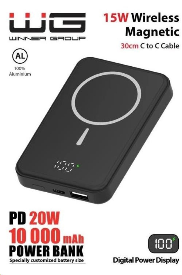 WG - Power Bank 10000 mAh, bezdrátová 15W + PD 20W + QC 3.0 22,5W, černá
