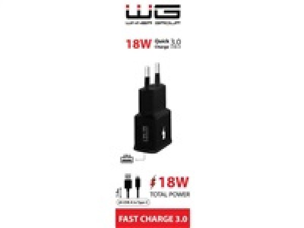 WG - Síťová nabíječka 1x USB-A, Quick Charge 3.0, 5V-9V-12V, + kabel USB-A na Type-C, černá