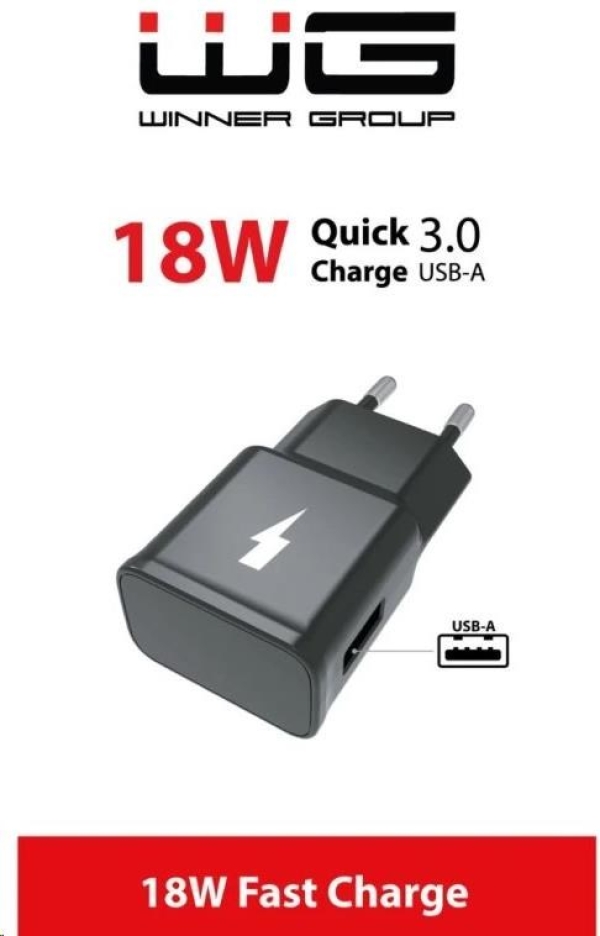 WG - Síťová nabíječka Fast 1x USB-A, Quick Charge 3.0, 5V-9V-12V, black