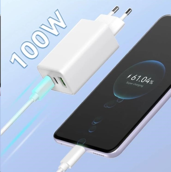 Síťová nabíječka GaN 100W je kompaktní, výkonná a odolná proti přehřívání. Díky výstupům 2x USB-C a 1x USB-A nabízí široké možnosti využití pro smartphony, tablety i další elektroniku.