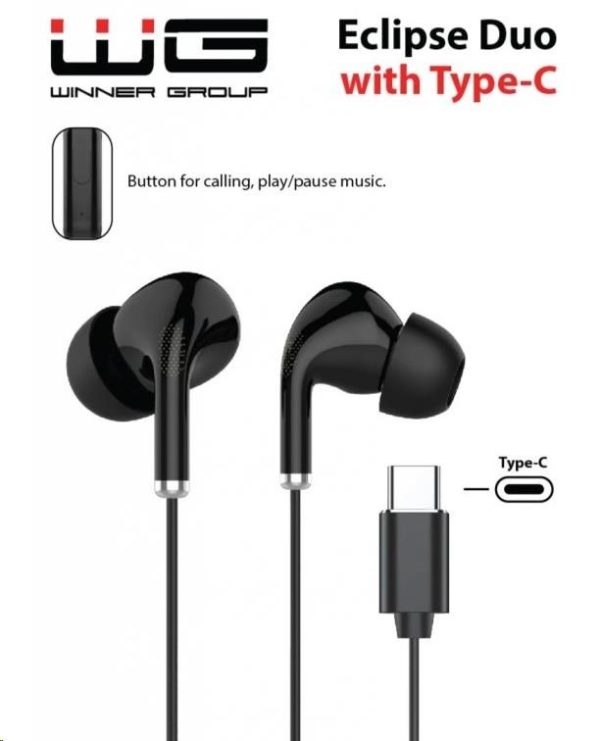 WG - Sluchátka s konektorem Type-C, Eclipse Duo, drátové, black