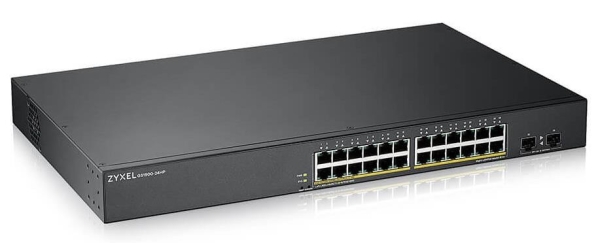 Zyxel GS1900-24HP v2 26-port Gigabit Web Smart PoE Switch, 24x gigabit RJ45, 2x SFP, PoE budget 170W